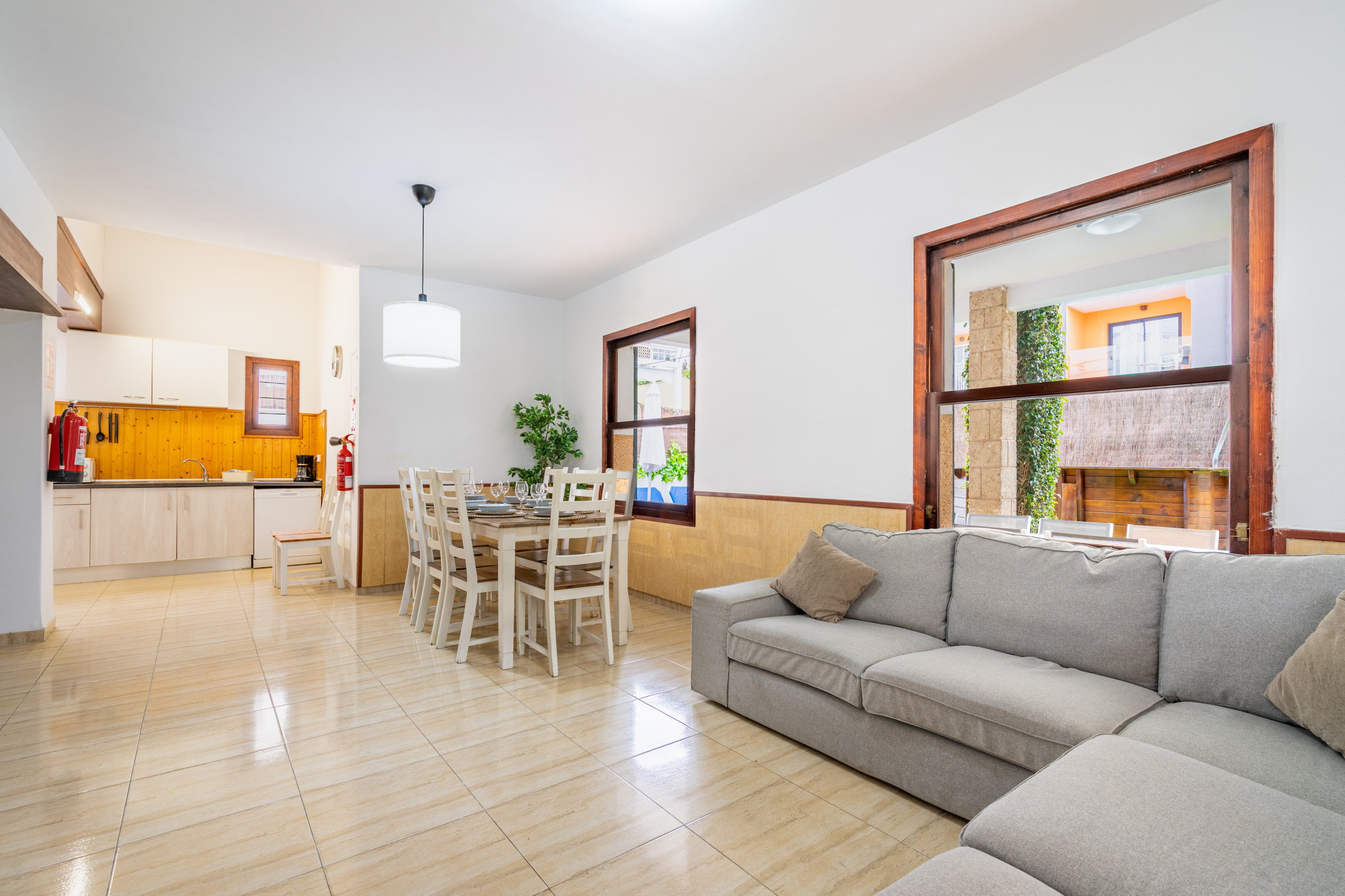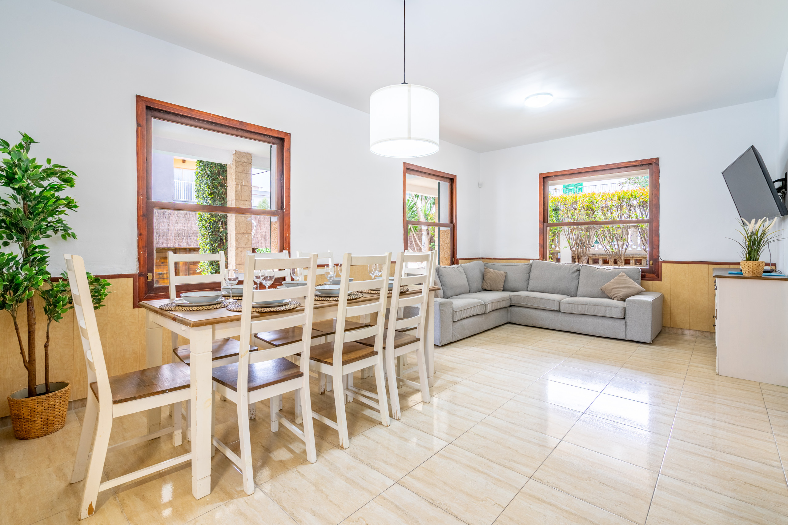 Deze comfortabele villa bevindt zich in Can Pastilla, een rustige buurt dicht bij het strand. De woning beschikt over 5 slaapkamers voor 10 personen, 3 badkamers, een ruime woon-eetkamer en een volledig uitgeruste keuken, ideaal om maaltijden te bereiden en van tijd met familie of vrienden te genieten.