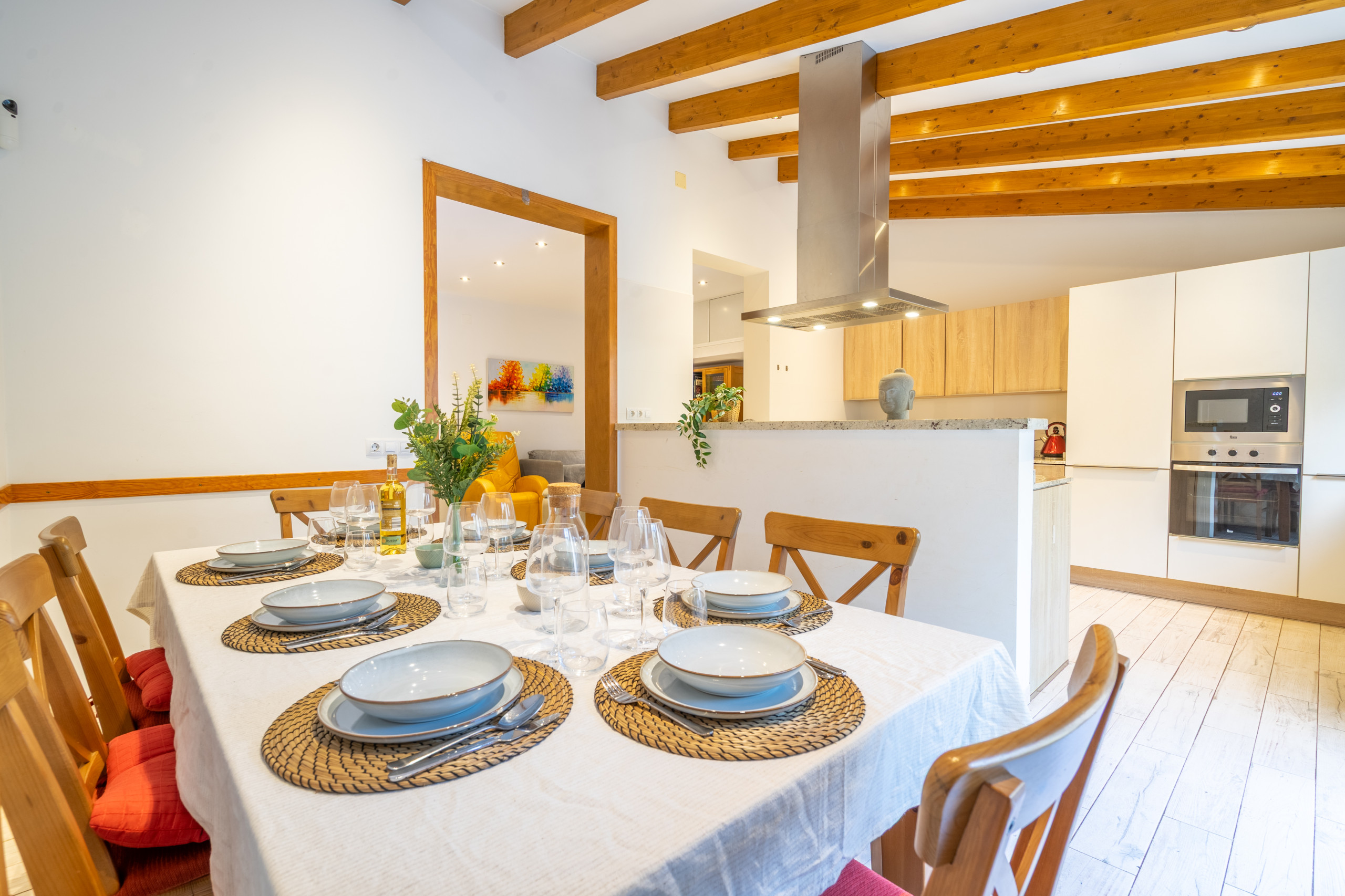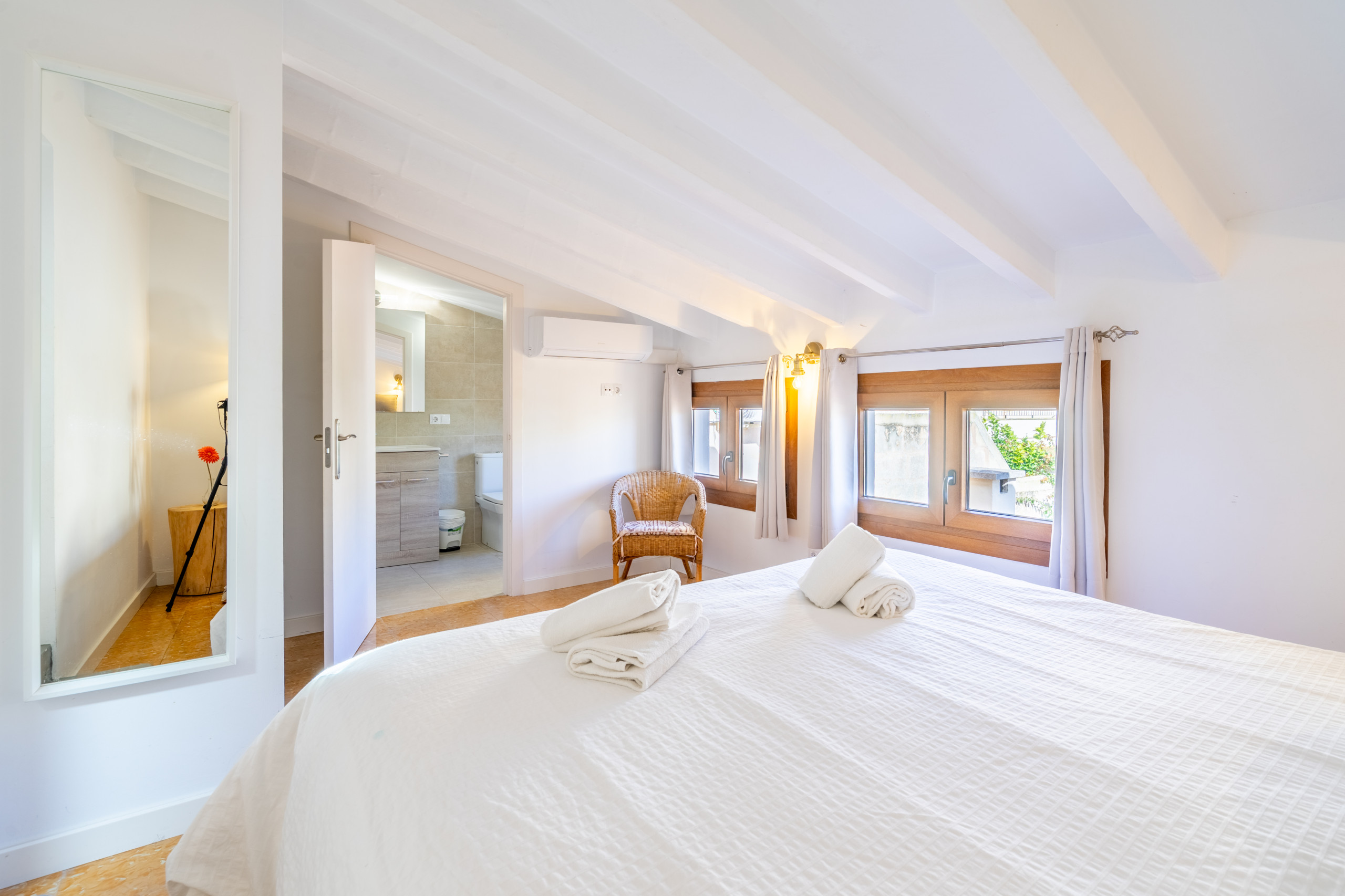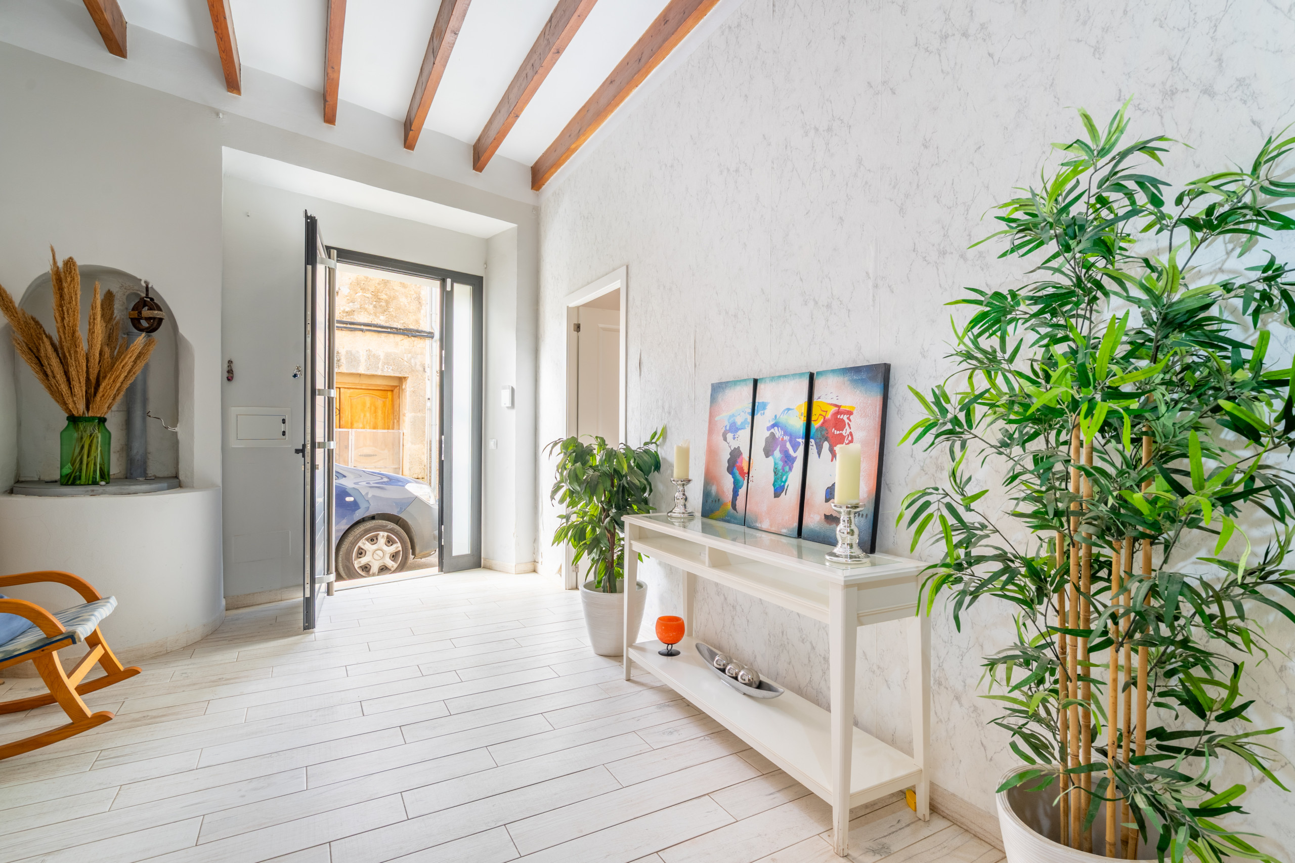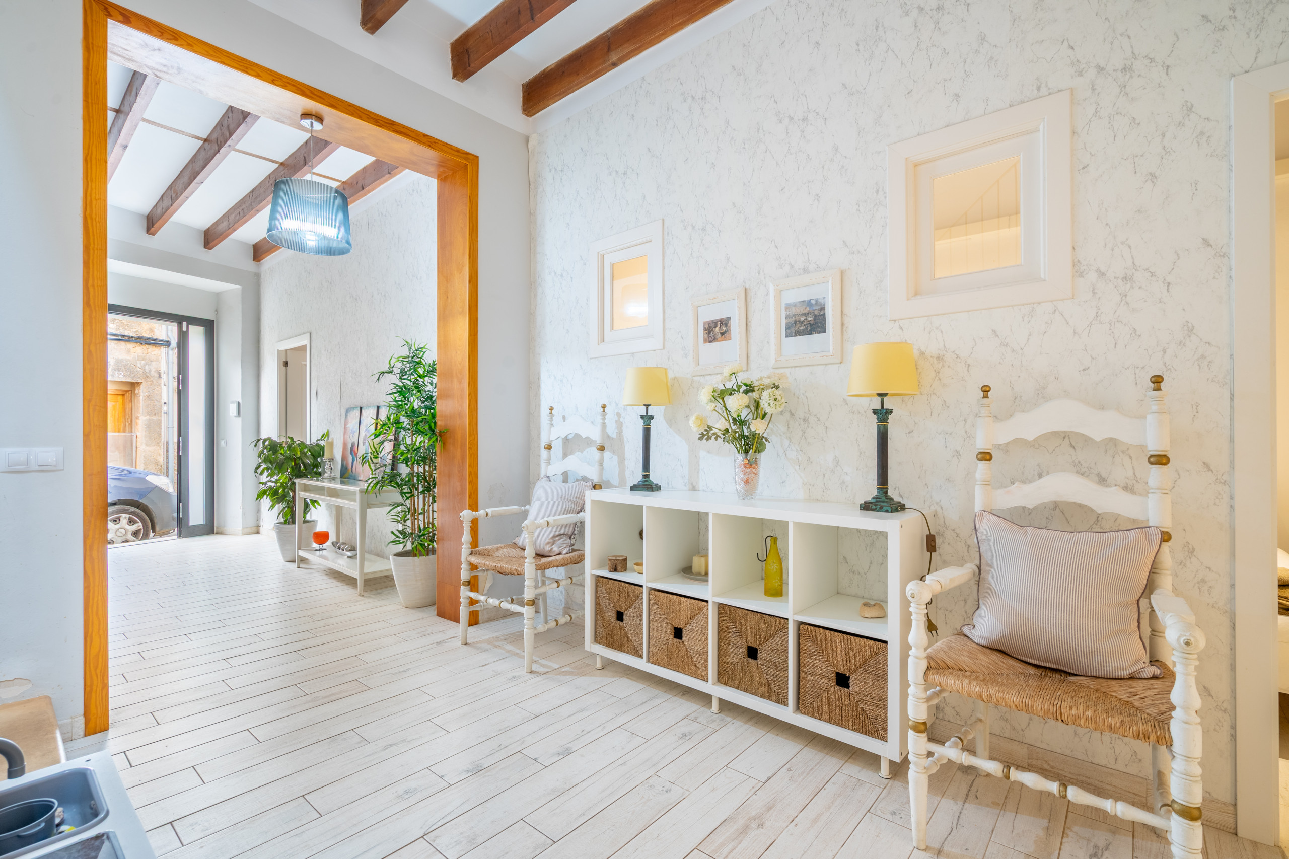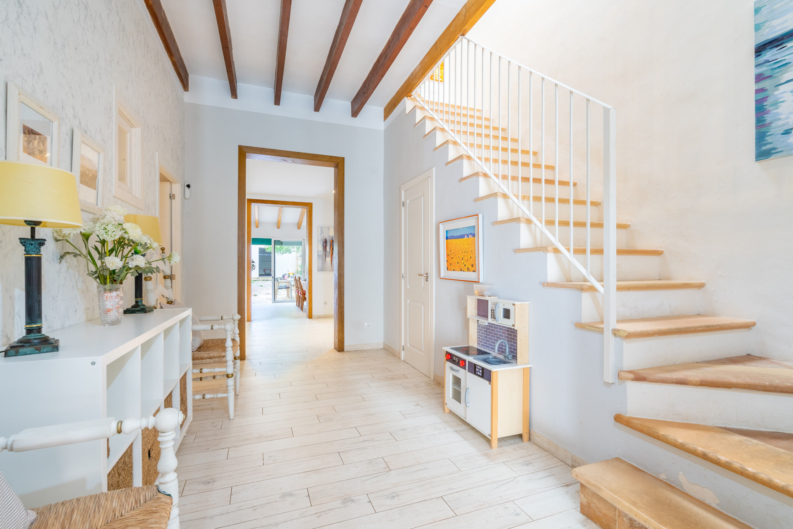 In het buitengebied biedt de woning een privézone met zwembad, geïntegreerd in een discrete en verzorgde omgeving, waarbij de privacy en rust van de woning behouden blijven. Het beschikt ook over een eigen parkeerplaats binnen hetzelfde huis, een toegevoegde waarde die een comfortabel en zorgeloos verblijf vergemakkelijkt. Een evenwichtige woning, goed verdeeld en gelegen in een rustige omgeving, ideaal voor gezinnen of groepen die ruimte, kalmte en comfort waarderen in het hart van Llucmajor.