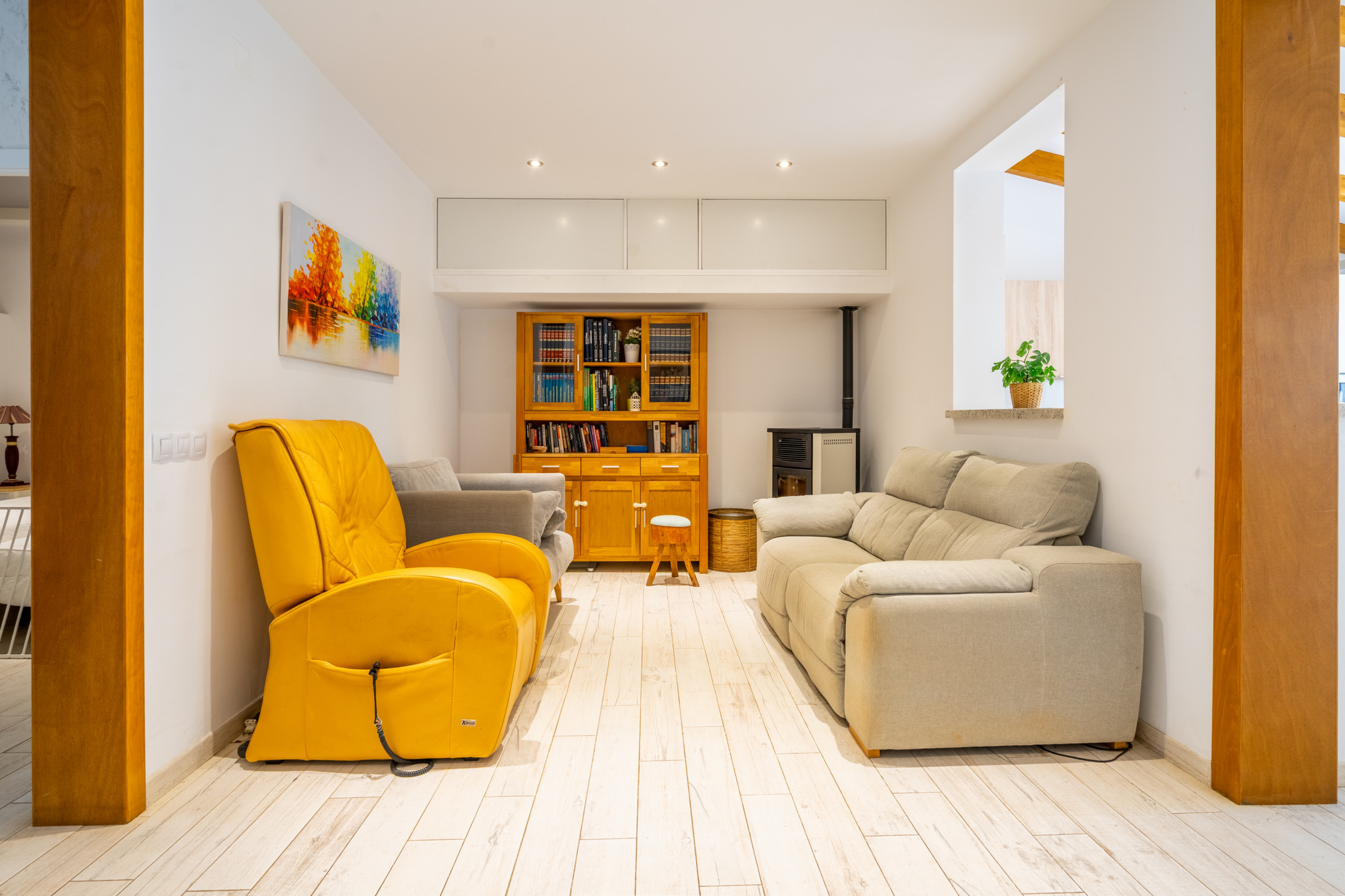 De woning beschikt over 5 lichte kamers en 3 badkamers, waarvan één en-suite. Alle kamers zijn voorzien van airconditioning, waardoor het comfort het hele jaar door gegarandeerd is. De keuken en eetkamer, ruim en goed geïntegreerd, bieden een praktische en aangename ruimte voor alledag. Bovendien beschikt het huis over twee pelletkachels, die een warme en comfortabele sfeer creëren tijdens de koudere maanden.